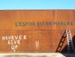 July 12 : At the end of a demonstration, disused buildings Galloo plant are open and occupied by exiles and supporters. Showers are constructed, toilets and tents brought by Médecins du Monde. The old house of the boss of the factory is also used for sleeping. Kitchen and living spaces are arranged. The solidarity of Calaisians and associations provides the necessary daily life and enables to prepare meals. Language courses, concerts are taking place. More than a hundred people live there, but the place also serves as a resource for other exiles present in Calais.