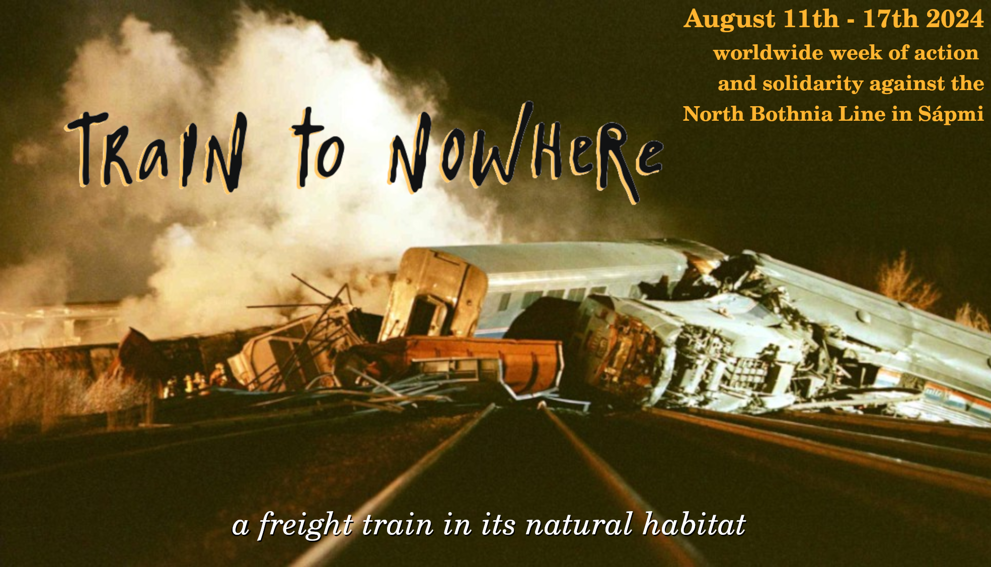 L’action que nous avons menée répond aussi à l’appel à semaine d’actions "Train to nowhere" - du 11 au 17 août 2024- en solidarité contre la ligne de Botnie du Nord, "une voie ferrée dont la construction vient de commencer le long de la côte de la région de Sápmi occupée par la Suède. Ce projet s’inscrit dans la continuité de plusieurs centaines d’années de colonisation brutale des peuples et des terres de Sápmi. Les industries extractives prospèrent grâce à l’augmentation de la demande de matières premières suite à la soi-disant "transition verte". C’est pourquoi elles ne cessent d’insister sur l’importance et l’urgence de la ligne de chemin de fer. Il en va de même pour l’État suédois et l’Union européenne."